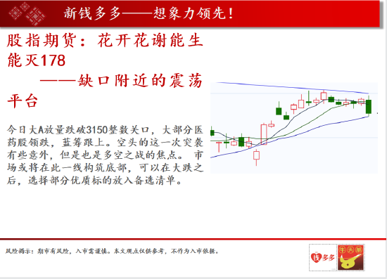 操作建议:今日大A放量跌破3150整数关口,大部分医药股领跌,蓝筹跟上。空头的这一次突袭有些意外,但是也是多空争夺的焦点。 市场或将在此一线构筑底部,可以在大跌之后,选择部分优质标的放入备选清单。