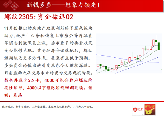 操作建议:重要经济会议落地后,螺纹短期缺乏更多炒作点,甚至有点低于预期,多头资金恐慌出逃引发黑色今天继续深跌。目前盘面或从交易未来转变为交易现实阶段。持仓再减少5万手,4000可能会称为螺纹阶段性顶部,4000以下谨防短线回调延续。预测:震荡。