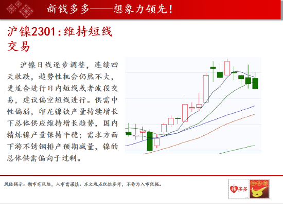 基本面概述:供需中性偏弱,印尼镍铁产量持续增长下总体供应维持增长趋势,国内精炼镍产量保持平稳;需求方面下游不锈钢排产预期减量,镍的总体供需偏向于过剩。