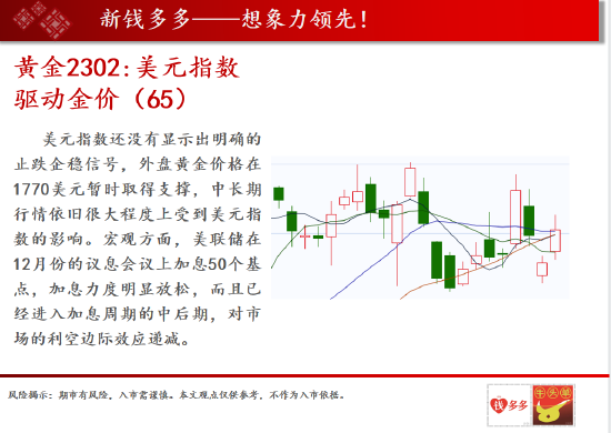 基本面概述:宏观方面,美联储在12月份的议息会议上加息50个基点,加息力度明显放松,而且已经进入加息周期的中后期,对市场的利空边际效应递减。