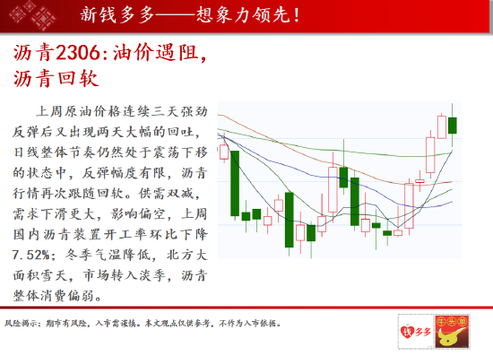 操作建议:上周原油价格连续三天强劲反弹后又出现两天大幅的回吐,日线整体节奏仍然处于震荡下移的状态中,反弹幅度有限,沥青行情再次跟随回软。