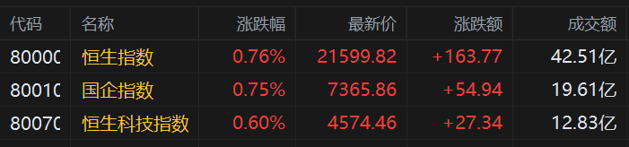 格隆汇1月12日丨隔夜美股再创四周高位,港股高开,恒指涨0.76%,国指涨0.75%,恒生科技指数涨0.6%。盘面上,
