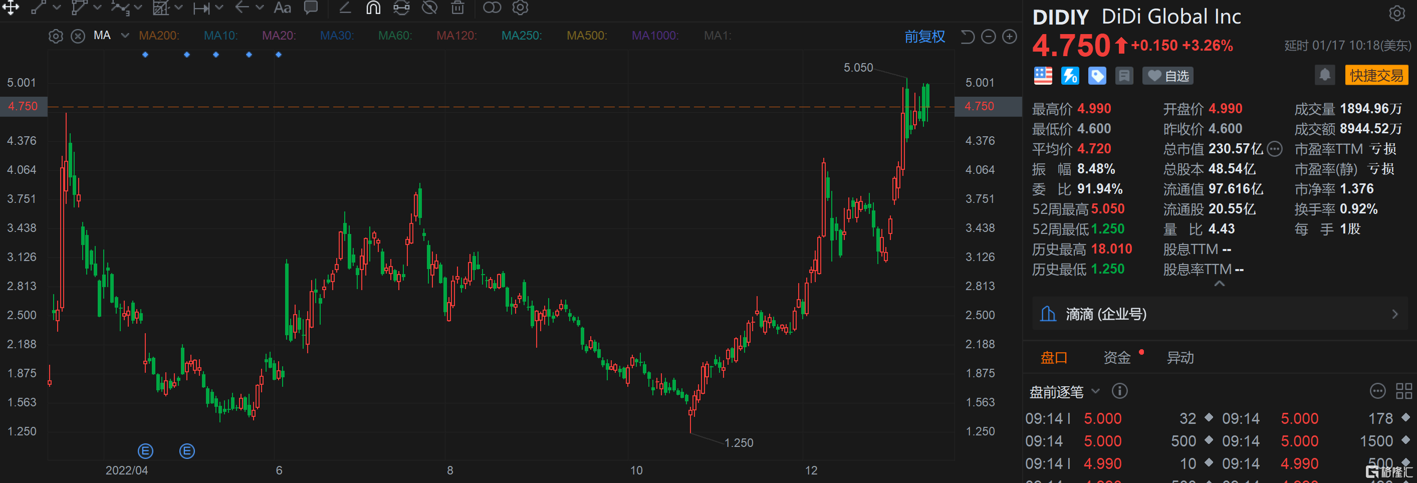 格隆汇1月17日丨滴滴(DIDIY.US)涨超3%,报4.75美元。滴滴出行周一表示,即日起恢复“滴滴出行”的新用户注册,而周二滴滴出行App目前已在安卓手机应用市场上架。