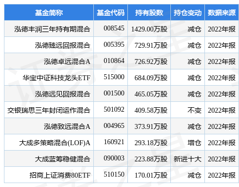 其中持有数量最多的基金为泓德丰润三年持有期混合,目前规模为74.71亿元,最新净值1.1594(1月18日),较上一交易日上涨0.39%,近一年下跌1.69%。该基金现任基金经理为邬传雁。