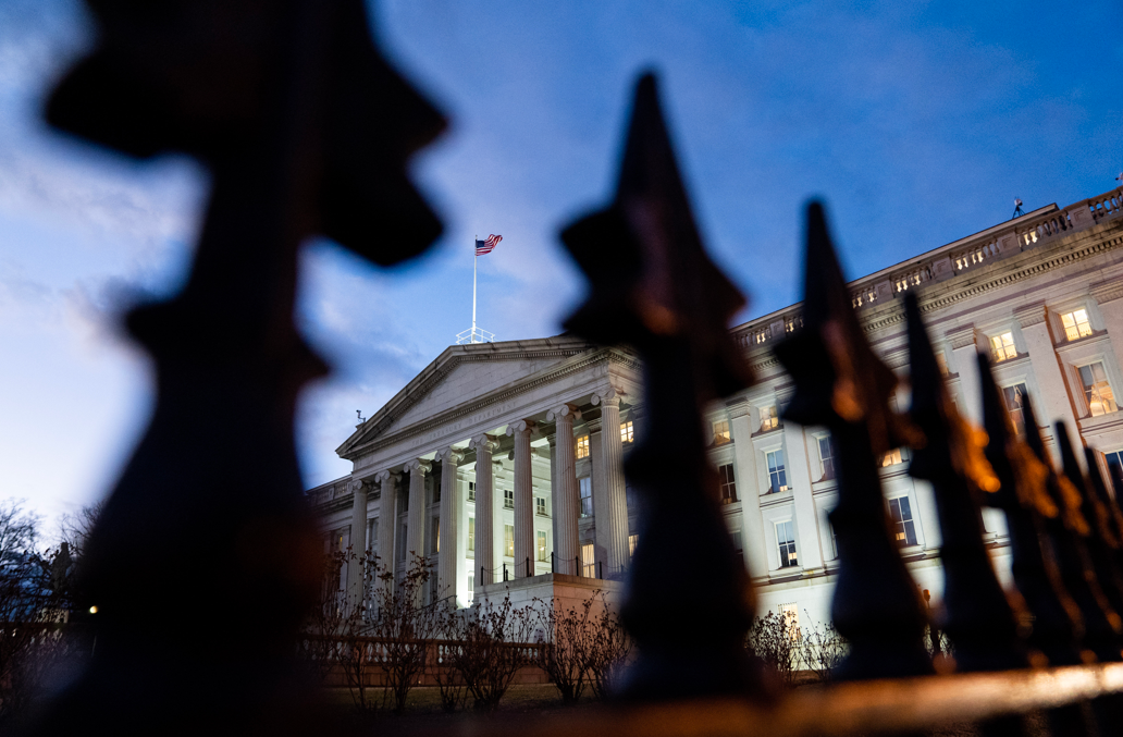 这是1月20日在美国首都华盛顿拍摄的财政部大楼。新华社记者 刘杰 摄