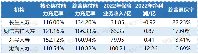 而其他几家较高的公司,其实,2022年以来,它们的累计综合退保率一直处于较高水平。比如,财信吉祥人寿,2022年三季度末,其综合退保率达到17.09%,在2022上半年末,就已经达到了14.52%;东吴人寿三季度末的综合退保率为12.56%,2022上半年末为8.31%;渤海人寿也在上半年末综合退保率就超过5%达到了5.89%。