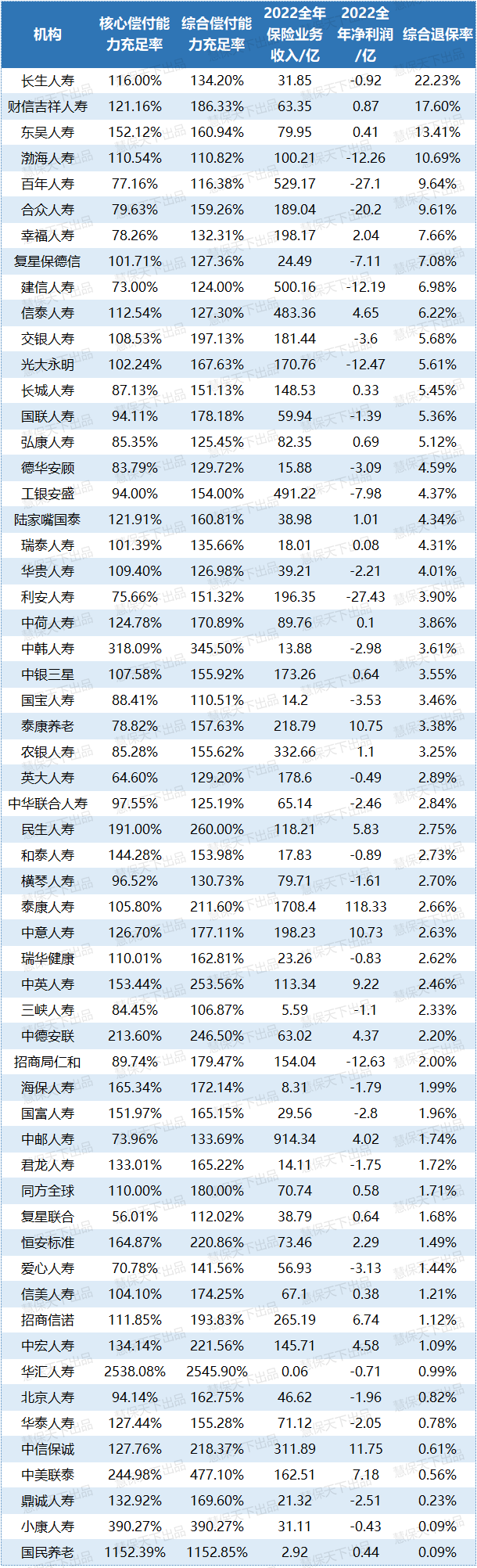 作为一个综合指标――退保率,其是观察保险公司业务质量、现金流以及客户服务等情况的重要窗口。2022年,人身险业负债端、投资端双双承压,低迷的市场环境又助推主体竞争趋向白热化,在这种情况下,业务质量指标尤其值得关注。