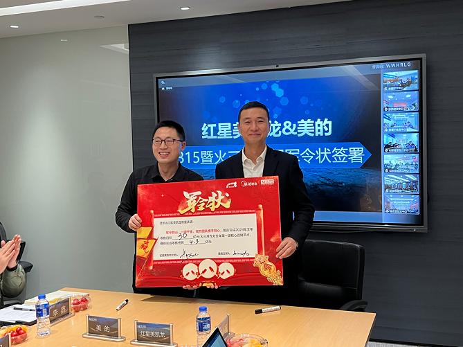 “火三月”大促是双方开启2023年合作并寻求突破的首个重要节点,现场,美的中国区域副总裁兼美云销+总监刘怀力和红星美凯龙家居集团IMP总裁签署了315军令状,将带领双方团队全力以赴打好开年第一战。
