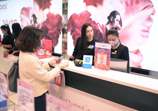 “今年春节,好多以前认识的内地客人都回来了,感觉还是很亲切!三年前不少人来香港还会事先兑换现金,但现在到店看到二维码都会扫一扫,消费力度也比以前更大了,他们都很兴奋、很期待来香港shopping!”在旺角,MOKO新世纪广场里的莎莎柜姐小双开心地说。