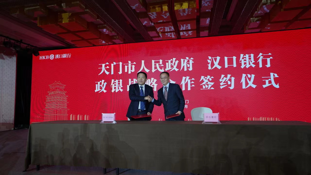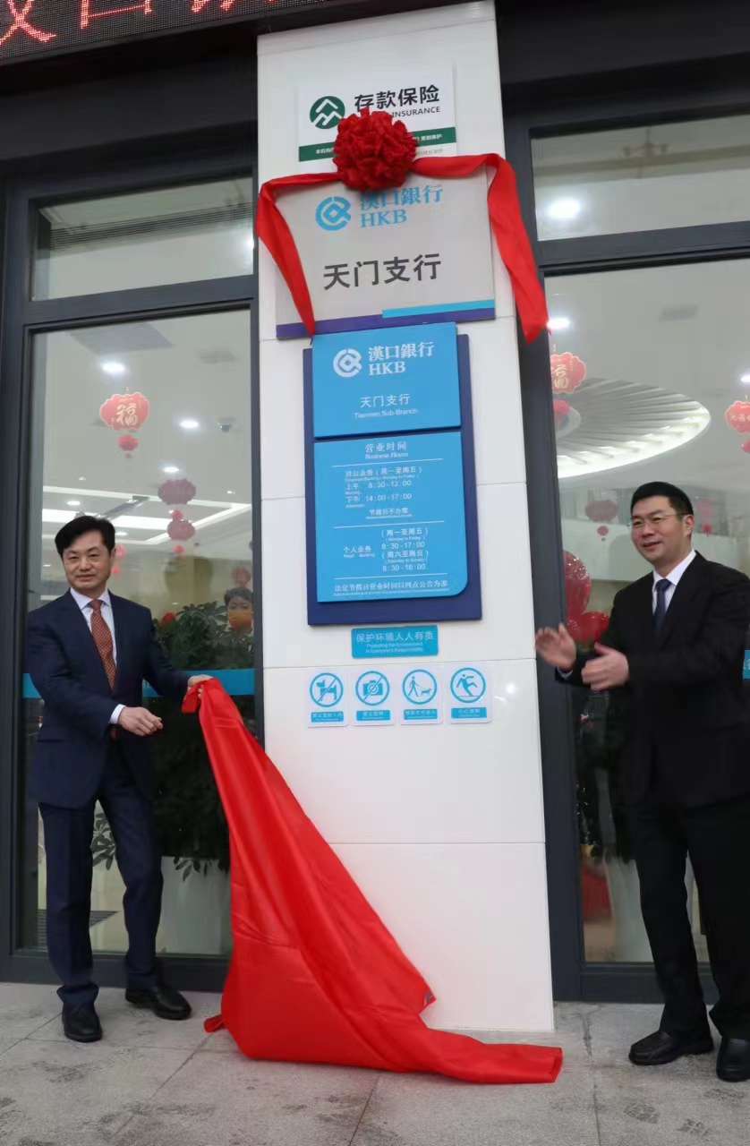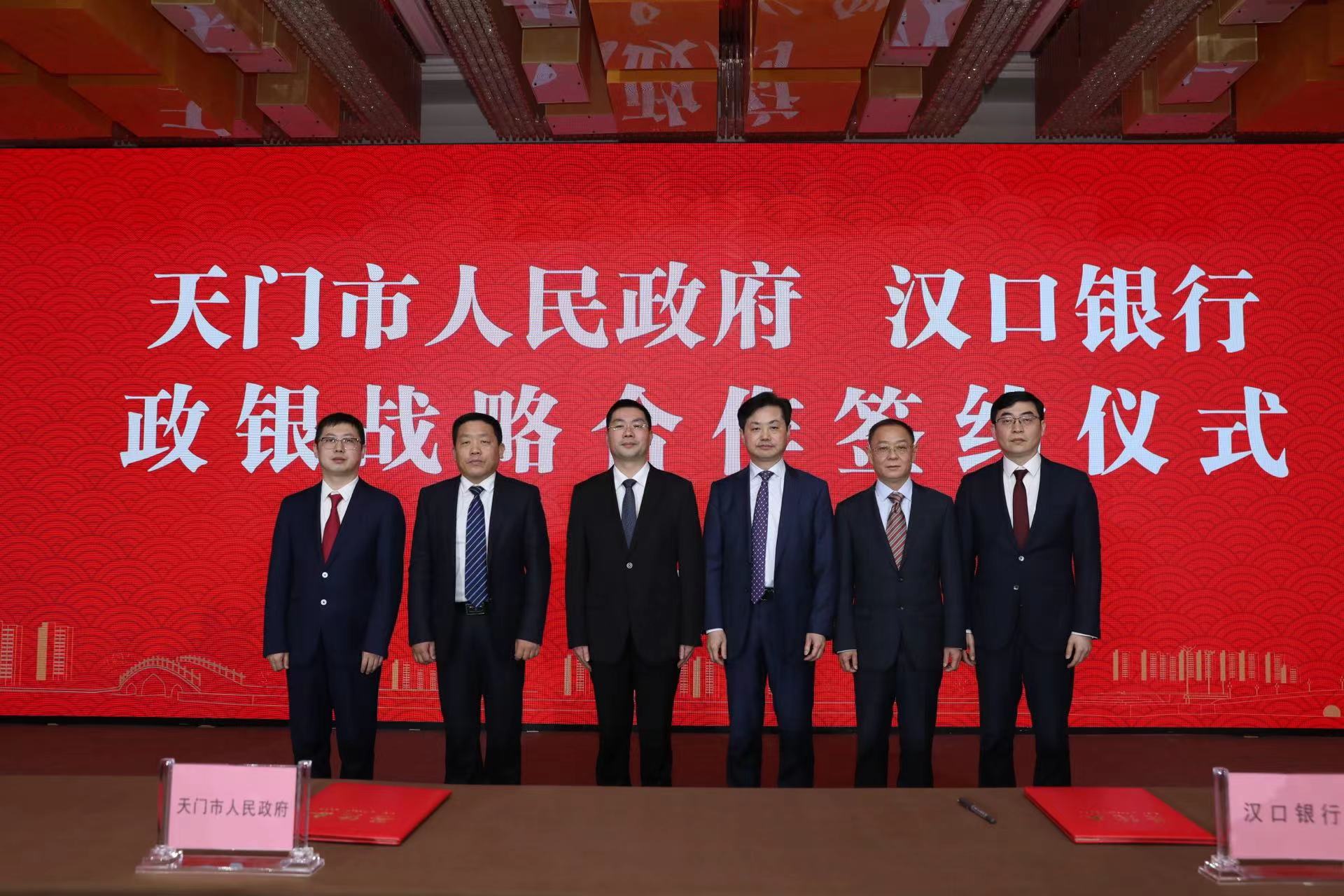 2月18日,天门市人民政府与汉口银行在湖北天门举行汉口银行天门支行揭牌暨天门市人民政府与汉口银行政银战略合作协议签约仪式。天门市委副书记、市长杨兴铭,市委常委、常务副市长涂季,副市长黄涛;汉口银行党委书记、董事长陈新民,党委委员、副行长雷丰新,行领导毛锋;人民银行天门支行行长吴狄、湖北银保监局天门监管组主任尹修毅,天门市直有关部门、及各界企业代表参加活动。