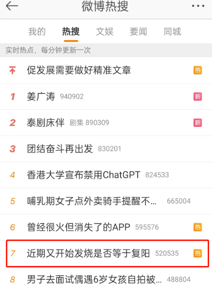 2月17日晚,话题词“国内首次检测出XBB.1.5”冲上微博热搜第一;2月18日, 话题词“XBB.1.5免疫逃逸能力增强”也上了微博热搜;2月19日,关于近期发烧是否等于复阳引起网友的关注。