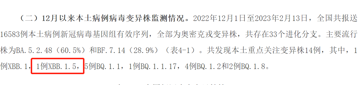 而上一次报告周期(2022年12月1日至2023年1月23日)尚未有XBB.1.5报告。