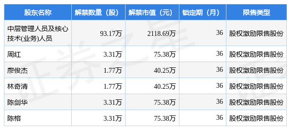 本次解禁涉及股东明细见下表:
