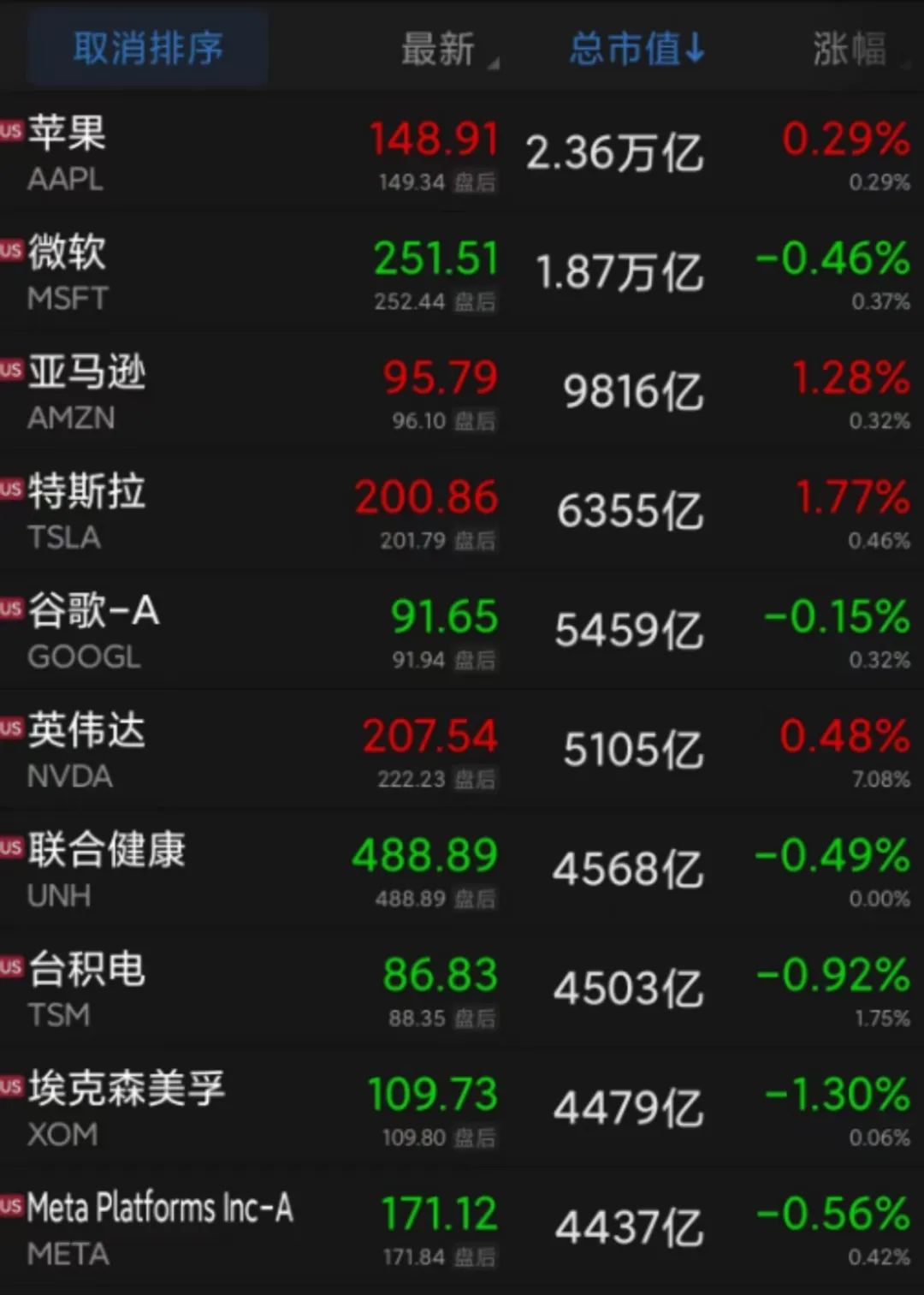 大型科技股涨跌不一。亚马逊、特斯拉涨超1%,苹果、英伟达微幅上涨,微软、谷歌、脸书母公司Meta小幅下挫,台积电跌近1%。