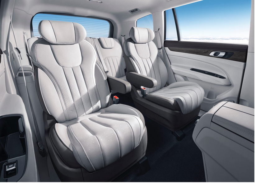 作为臻三排大七座宽适SUV,福特新领裕拥有越级车身尺寸和创新的座椅布局,赋予其堪比豪华保姆车的宽奢空间和舒适驾乘体验。福特新领裕长宽高为4905mm*1930mm*1755mm,轴距达到2865mm,傲视同侪。同级罕有的2/2/3座椅布局,赋予整车更强的独立舒适性。第二排145°舒压Pro航旅之座,配备4向调节航空头枕、3档可调通风/加热、座椅4向电动可调、可调节独立扶手、Dinamica? 环保超细纤维麂皮绒,让乘客宛如置身于飞机头等舱,尽享驾乘舒适。