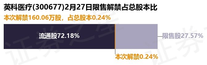 根据市场公开信息整理,英科医疗(300677)(300677)于2月27日将有160.06万股限售股份解禁上市,为公司股权激励限售股份,占公司总股本0.24%。最近一年内,该股累计解禁425.46万股,占总股本的0.65%。本次解禁后,公司还有1.82亿股限售股份,占总股本27.57%。具体如下图所示: