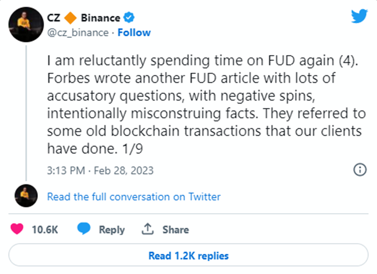 但也有人指出,福布斯和币安已经是老对头了。2020年,币安就曾起诉过福布斯诽谤,但后来币安撤回了诉讼。