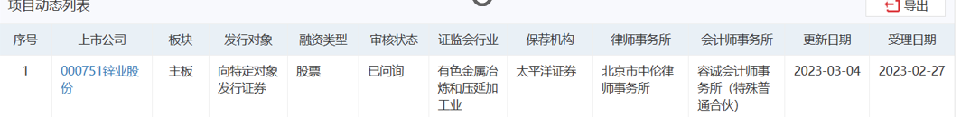 此外,1单主板再融资在审项目也进入问询环节,来自深交所。