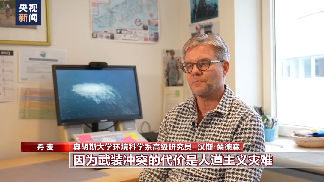 汉斯・桑德森是丹麦奥胡斯大学环境科学系高级研究员。他向中央广播电视总台记者展示了“北溪”管道爆炸事件对于环境危害的调查研究结果,并表示目前没有合适的补救措施。