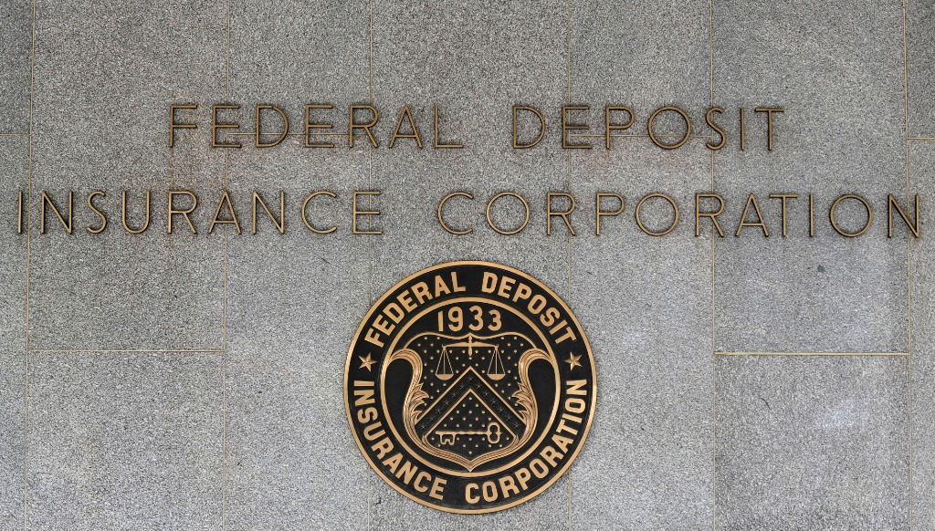 这是2012年8月28日在美国首都华盛顿拍摄的美国联邦储蓄保险公司标志。新华社记者张军摄
